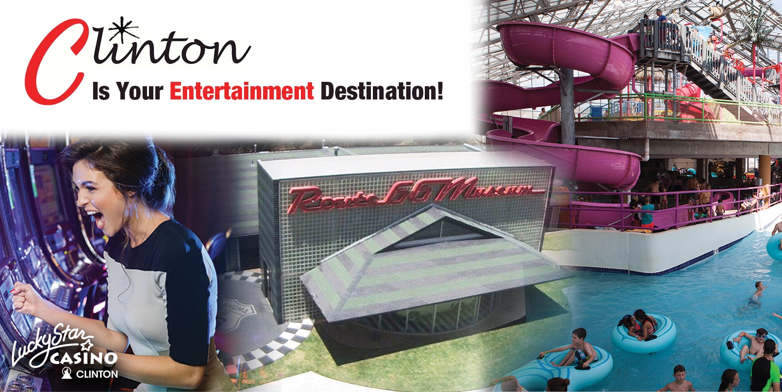 visitors are drawn to our area attractions, such as the Oklahoma Route 66 Museum, the Cheyenne Cultural Center, the Lucky Star Casino, and -- recently opened -- the state’s first-of-its-kind Water–Zoo indoor water park. Nearby Oklahoma City also offers live performances, professional sports and varied entertainment options.